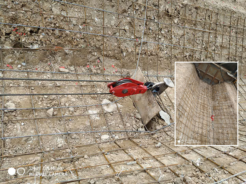 牽引行走顧名思義就是拉著機器行走,這種行走方式往往需要借助卷揚機來進行。機器在工作的過程中需要在前方30-50米的地方打地錨,然后通過鋼絲繩牽引機器行走,這個設備行走需要1人開著挖機機砸地錨+1人掛鋼絲繩子+1人操作卷揚機。
