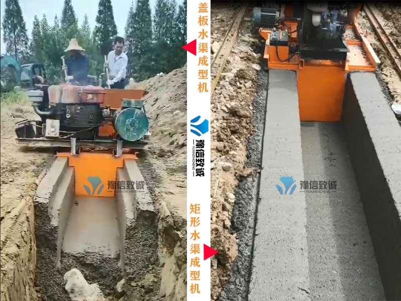 定制矩形水渠成型機,無視地域環境的影響。即使是在山區也能如愿的使用這一全自動的機械設備進行修渠造溝。