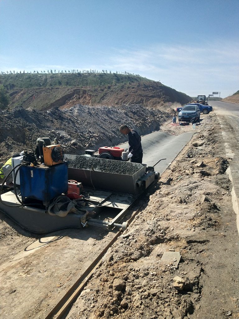 今天分享這臺自走式水渠機(jī)的案例有兩大特點(diǎn)。眾所周知在前些年的技術(shù)文章里我一直強(qiáng)調(diào)過自走式液壓水渠機(jī)不可以使用商混料。而今天這臺山西朔州的液壓水渠機(jī)恰恰是使用罐車商混料,而且做的很成功。近些年水溝現(xiàn)澆的工程中對混凝土的要求是越來越高了。就如此次朔州的這個現(xiàn)場,甲方明確要求必須使用標(biāo)號C25的商混。